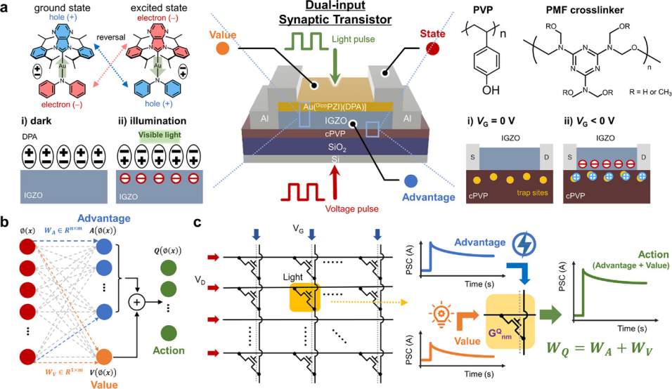 Dong Gue Roe¢Ó, Sungjoon Cheon¢Ó, Byung Hak Jhun¢Ó, Seongil Im¢Ó, Jihyeon You, Seonkwon Kim, Youngjae Yoo, Hyunsu Ju*, Youngmin You*, and Jeong Ho Cho* "Physical Implementation of Reinforcement Learning via a Signal Summation Process in a Dual-Input Synaptic Transistor: Photo-Induced Dipole Inversion of Au(I) complex with Charge Traps of cPVP" Adv. Mater. 2026, e16522.