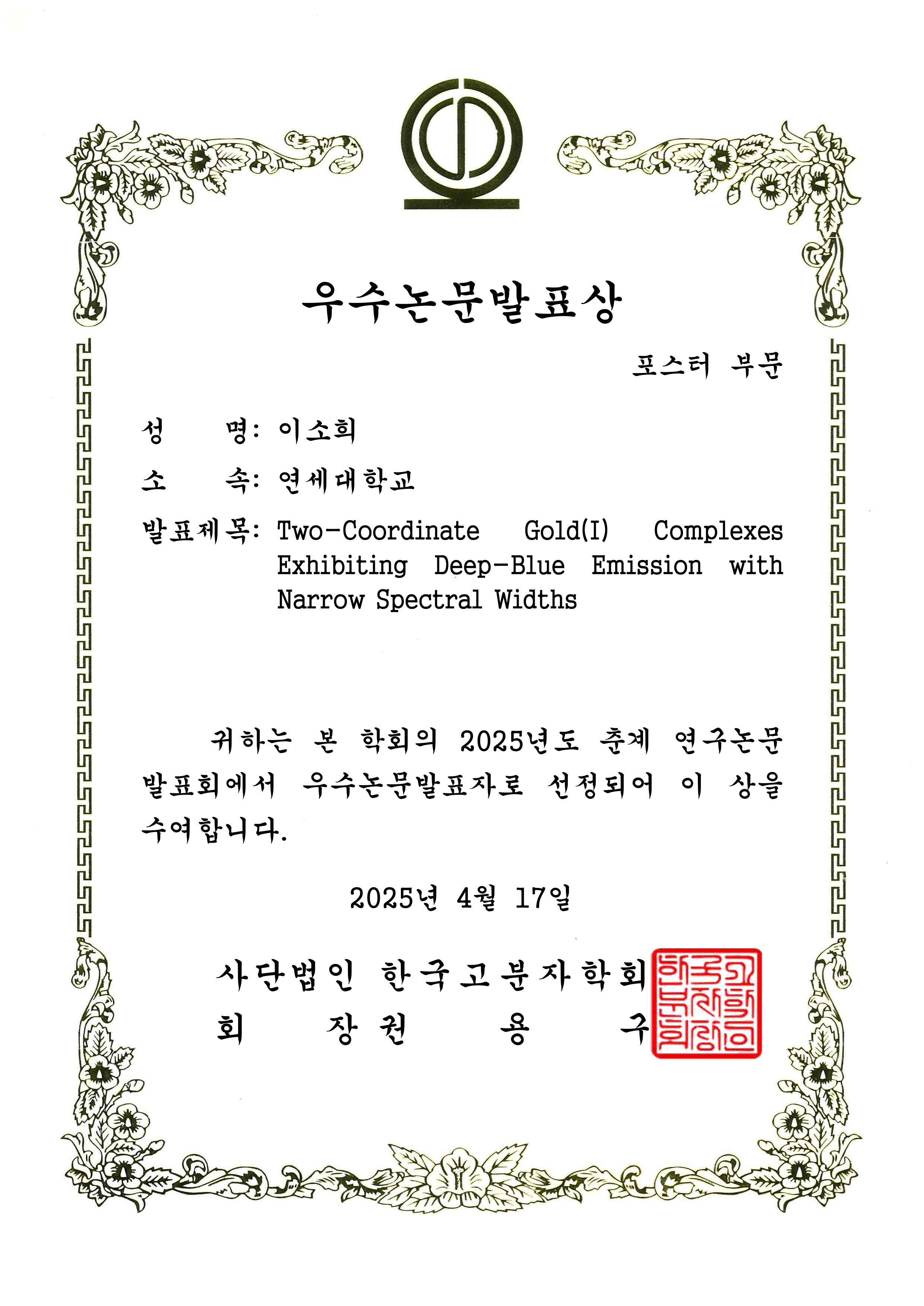 Poster Award (2025 ´ëÇÑÈÇÐȸ ¹«±âºÐ°ú ÇÏ°è ½ÉÆ÷Áö¾ö)
