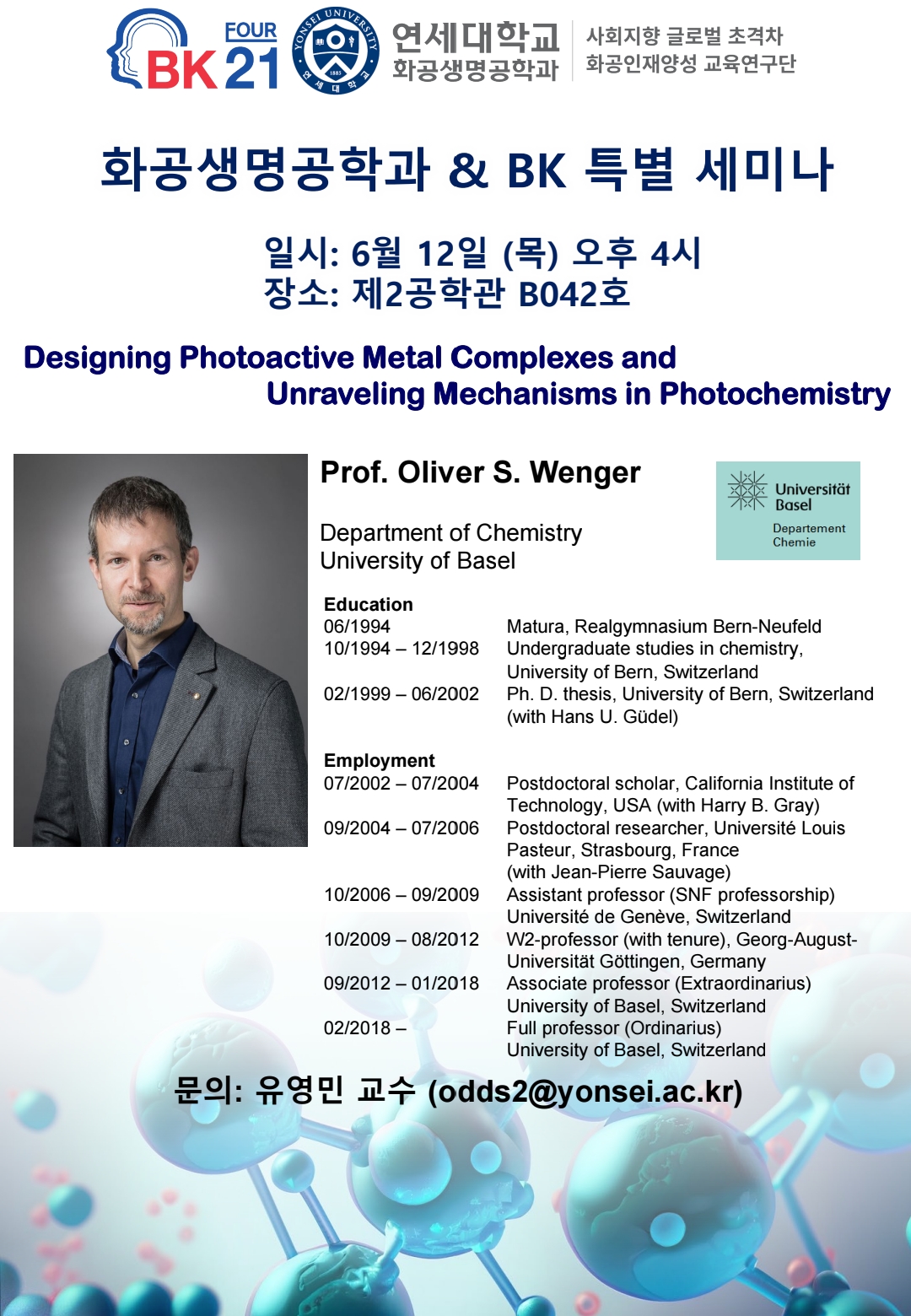 The department of Chemical and Biomolecular Engineering & BK Special Seminar with Prof. Oliver S. Wenger